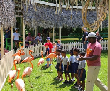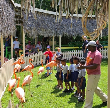 We're going on a wildlife adventure at Ardastra Gardens! This conservation paradise offers educational tours seven days a week, housing a variety of animals from talking parrots and crocodiles to our national bird, the pink flamingo, which puts on a show three times a day. It’s a fun, affordable experience for families and a big hit with kids. If you’re an animal lover or just someone who enjoys the great outdoors, Ardastra Gardens is the place to be. 🦜🌿